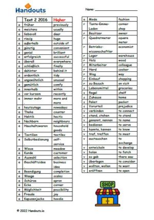 Worksheets for teachers of Senior Cycle German – useful for classroom settings.